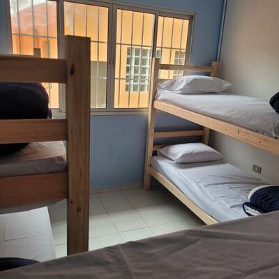 You will have a bed in a shared room, which means you will share the same room with other people.