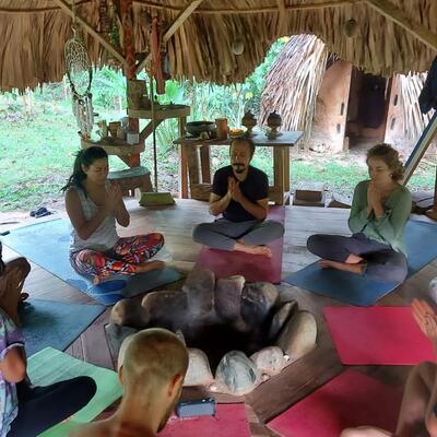 Every day, we work together on a specific project that helps the community. In the afternoon we have free time to enjoy the river or to participate in different workshops that people from the community are offering like- Kogi weaving, yoga, temazcal, men/women’s circles and more - depending on who is here in the farm. At night, after dinner we share the evening together in the Maloka with fire, sharing words and songs.