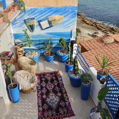 Get ready for an unforgettable adventure at our cozy hostel overlooking the legendary anchor point surf spot in Morocco! As a volunteer, you'll become part of our close-knit community, where the vibes are as chill as the waves.