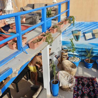 This hostel has an incredible atmosphere! Valou and Saiid were fantastic and had a wealth of knowledge about Taghazout and the surrounding areas. During the off-season for surfing, the hostel wasn't too crowded while I was volunteering, but the guests were always kind and brought great energy. There were often communal meals where volunteers were included, which added to the sense of community. The working hours were very flexible, contributing to the laid-back vibe. By the end of our stay, it was hard to say goodbye to this little slice of paradise.