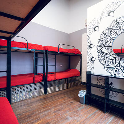 You will have a bed in a shared room, which means you will share the same room with other people.