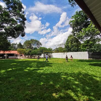 Te cuento que vivo en la ciudad de Villavicencio y tengo una finca a solo 15 minutos de la ciudad. En este momento, me interesa que me puedas colaborar con dos cosas: clases de inglés y tareas de limpieza en la finca, como pintura, recoger hojas y basura, limpieza de piscina y arreglos generales, si sabes construcción mejor. Vivirías en la finca, pero cuando esté alquilada para turismo, te hospedarías en mi casa en la ciudad. Espero que esto se
