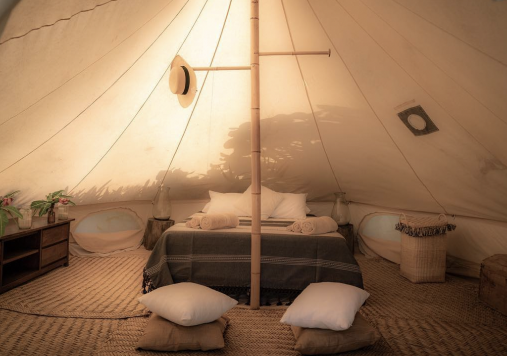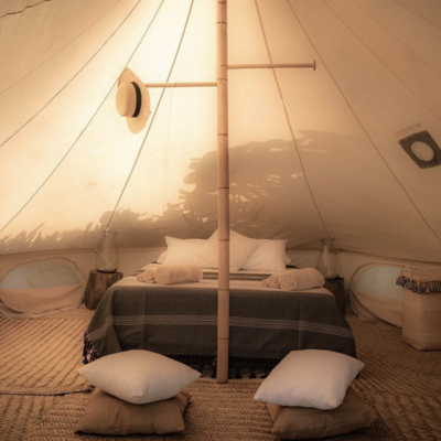 You will sleep in a tent at a camping site.