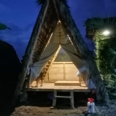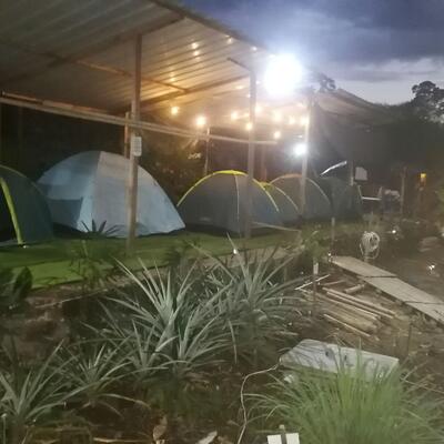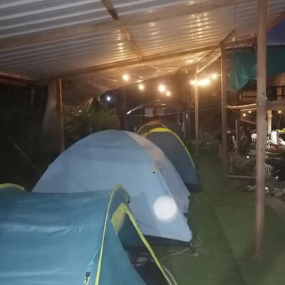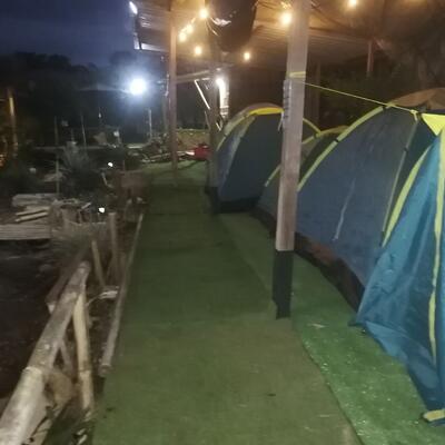 You will sleep in a tent at a camping site.