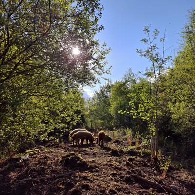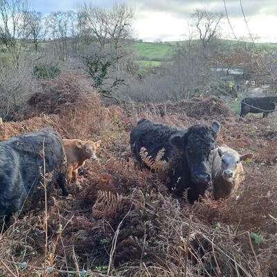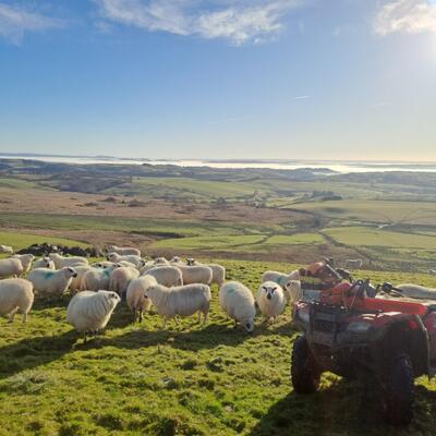 The farm is a mixed livestock hill farm, we have sheep, cows and a few pigs. This is very much a new project so there's a lot of work underway converting infrastructure and putting new projects together with holistic regenerative systems in mind. Daily tasks vary greatly on the season and the weather. Livestock work could include moving the sheep and cows onto the next paddock, or feeding the pigs. Every day is different.