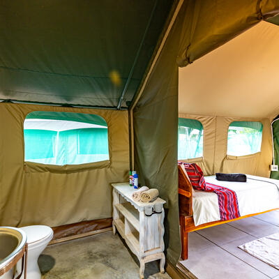 You will sleep in a tent at a camping site.