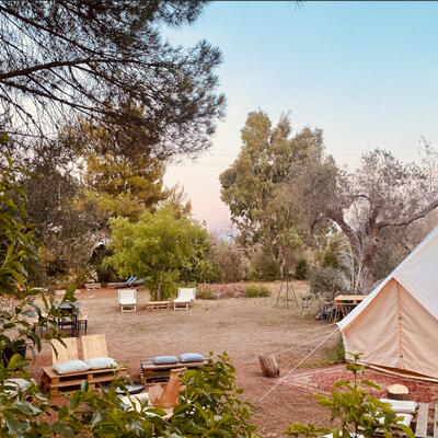 You will sleep in a tent at a camping site.