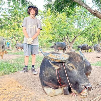I had an amazing time at the farm! Mit and everyone there were incredibly welcoming and taught me so much about Thai agriculture. The daily routine was perfectly balanced, you always knew when it was time to work on the farm, help out at the local school, enjoy a meal, rest, or simply relax during free time. I learned about rice selection, fishing, buffalo care, and discovered so many new fruits, including my new favorite—Longan! The food was absolutely delicious, and they even adjusted the spice level to suit each person's preference. I also loved that everything at the farm was 100% organic.