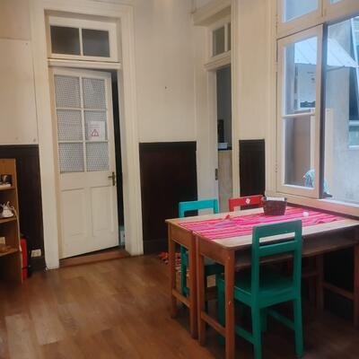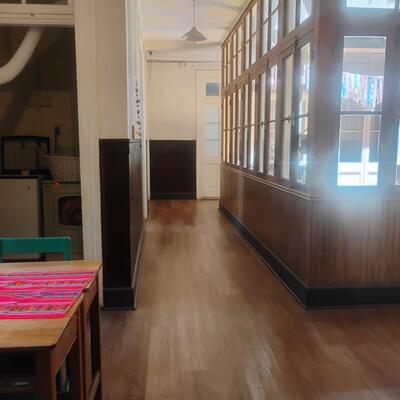 Nuestro Hostal tiene 2 pisos independientes. Uno de ellos busca financiar parte de nuestra escuela, que funciona de marzo a diciembre. Nuestra casa está ubicada en un sector turístico, en Cerro Alegre, y en un hermoso edificio patrimonial restaurado y seguro, el pasaje Bavestrello. El equipo a cargo de las labores está formado por profesoras de la escuela.
