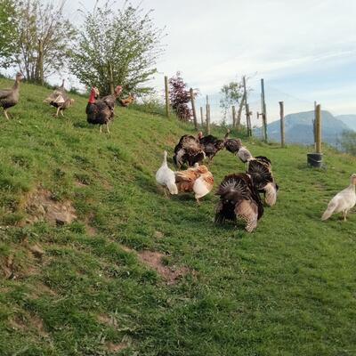 We are a couple with two daugthers, trying to establish a sustainable farm, based on permaculture and regenerative agriculture principles, in a 12 acres farm in the north of Spain. We bought the farm 15 years ago, completely refurbished the house and are now working on designing and building the infrastructure (barns, chicken coops, fences, swales, ponds, terraces...) and planting trees, shrubs and herbs to create a beautiful and resilient farm.