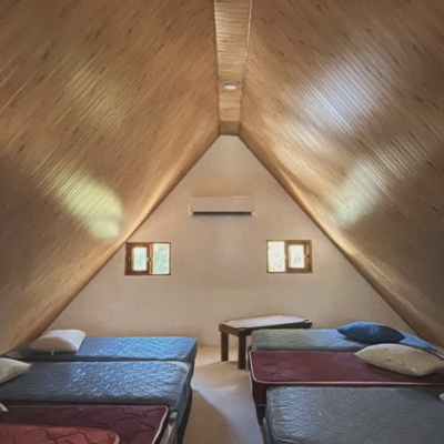 You will have a bed in a shared room, which means you will share the same room with other people.