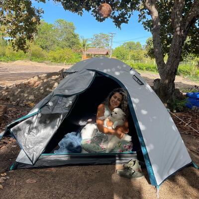You will sleep in a tent at a camping site.
