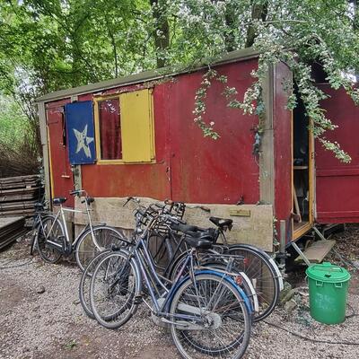 The fee includes accommodation in a private room or in a caravan (shared toilets and kitchen), food (only basic staples, if you have specific requirements you can bring your own), and the use of a bike (we have old but functional bikes). You get to work on your own project and we provide mentoring and access to multiple regenerative projects in one of the largest nature areas in Amsterdam.