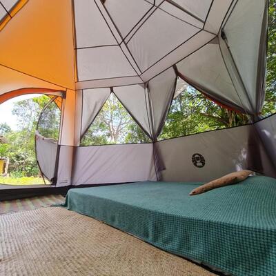 You will sleep in a tent at a camping site.