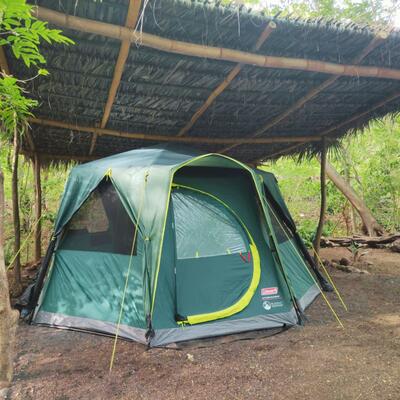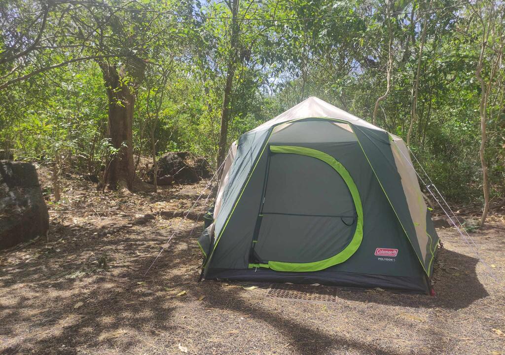 You will sleep in a tent at a camping site.