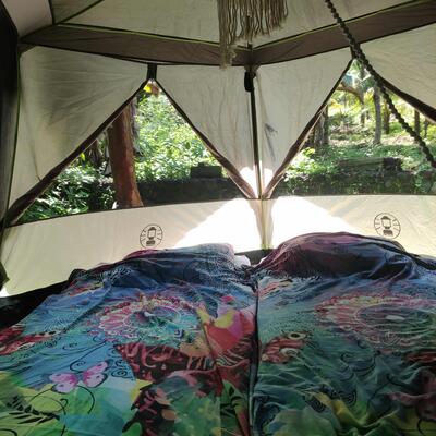 I'm creating a glamping on a beautiful piece of land with jungle. Right now it's finishing the last details, and just opening up for guests. The land is beautiful and perfect if you enjoy nature, you'll see monkeys, deer, birds and many more, and my 2 puppies. At the same time it's close to the community and many activities. I like deep conversations and connection, and you'll also have the opportunity to connect with locals