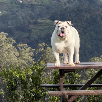 Care for my English bulldogs, goat and chickens. Gardening, including pulling out weeds, and cultivating vegetables. Sharing cleaning and cooking chores. And most importantly enjoying your time on this beautiful island.