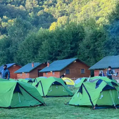 You will sleep in a tent at a camping site.