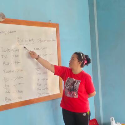 Teaching a language to the host, guests, or local communities.