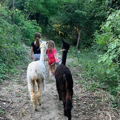 famiglia con bambini di 5 e 8 anni. Ospitiamo turisti con glamping, facciamo attività con animali alpaca e cavalli a disposizione dei volontari.
