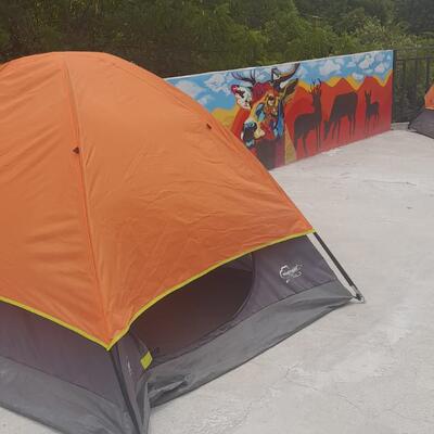 You will sleep in a tent at a camping site.