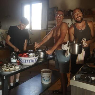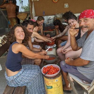 Merci Mauna pour ton accueil. On se sent comme à la maison. A 57 ans, je viens de vivre ma première expérience de woofing, et j'avoue que ce que je viens de vivre me donne envie de recommencer… Le lieu, le site sont incroyables : pleine nature entourée d'oliviers, vue sur la mer avec plongeon en moins d'un quart d'heure, Raguse, Caltagirone...à proximité. C'est une petite structure, ce qui me convenait parfaitement. Les travaux sont variés, et chacun peut trouver sa place, apprendre de nouveaux talents tout en apportant sa contribution (olives, compost, réparation, entretien...