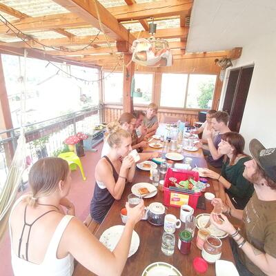 Great food and a beautiful valley! Pristine river with a beach to swim and sunbathe just 10 mins walk away. Mountains to go hiking and a hammock to relax in on the terrace. The work is hard but fair so long as you don't mind early starts! But this leaves more or less the whole day to have as your own. I got into a great routine and feel much healthier after leaving. Will miss everyone all the best x