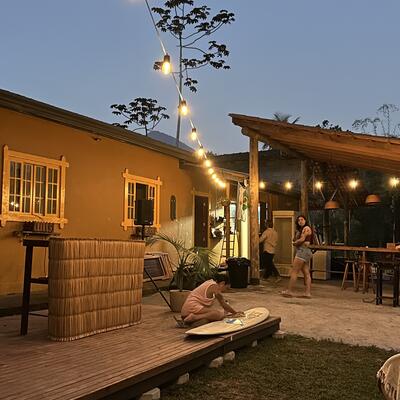Nosso espaço é um novo hostel surf & skate recém-inaugurado na mágica Praia de Itamambuca. Estamos na entrada da vila, rodeados pela natureza, e queremos criar uma atmosfera única que mistura esporte, autocuidado, música e boas conexões com pessoas do mundo todo 🌍. Aqui a vibe é de liberdade, flow e muita energia positiva: surf, skate, yoga, jardinagem, arte e momentos que ficam pra vida✨