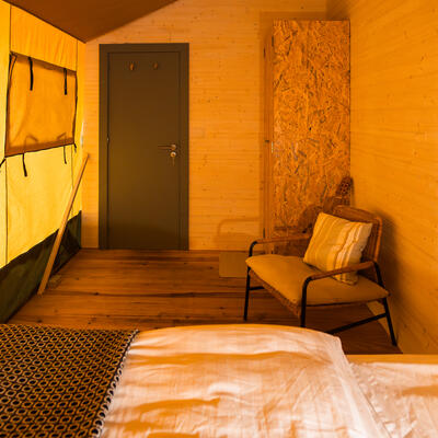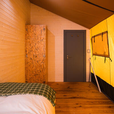 You will sleep in a tent at a camping site.