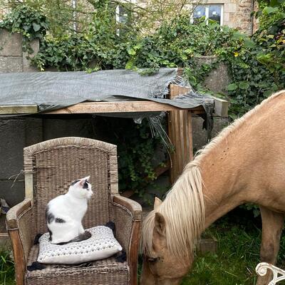 We are a family of four : Mayilan 18, Miléna 11, Lénaik and I, 49 years old. We live in a big house in the countryside near by the seaside. We have horses, rabbits, chicken, cats and dog. During their free time, we welcome chidren from 6 to 16 placed in foster homes or meeting difficulties in their famillies. We would like a little help for home and garden maintenance, care of the animals, activities for kids.