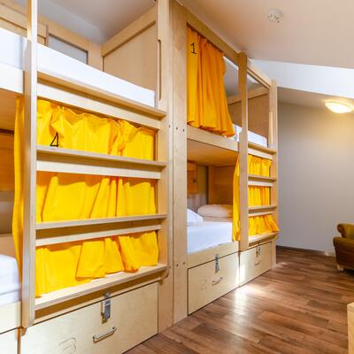You will have a bed in a shared room, which means you will share the same room with other people.