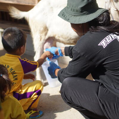 Teaching or assisting the host, guests, or local communities in practicing sports or physical activities.