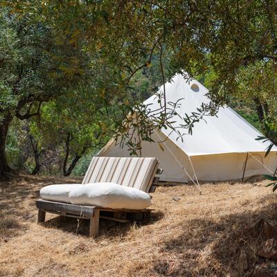 You will sleep in a tent at a camping site.