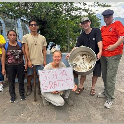 La the project is an amazing place. Surrounded by three volcanoes, cats, dogs, birds, trees, and fruit plants, it feels full of life. Chef Javi is a wonderful host — always happy to share his delicious recipes and food. I can't wait to return and help with the garden and food project.