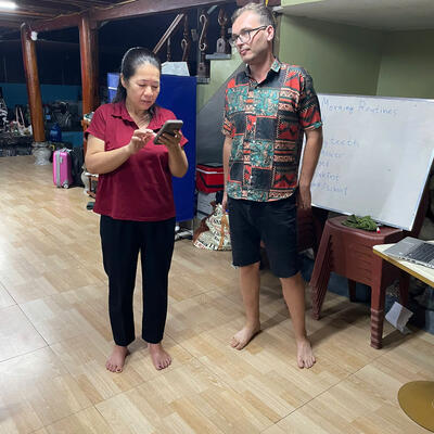 Teaching a language to the host, guests, or local communities.