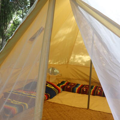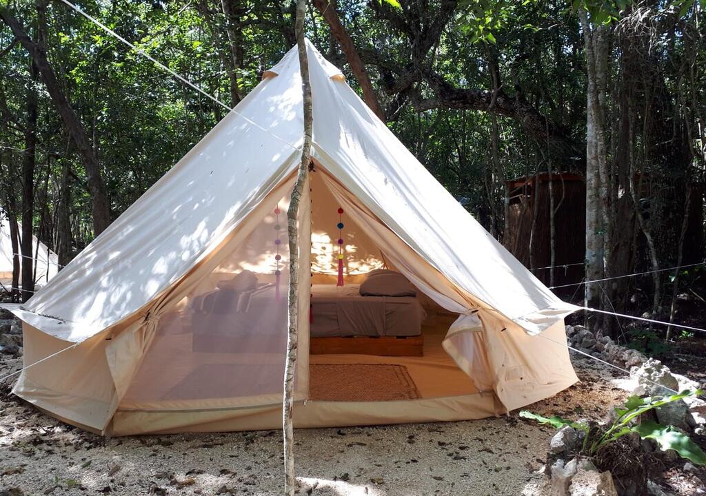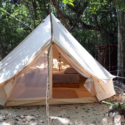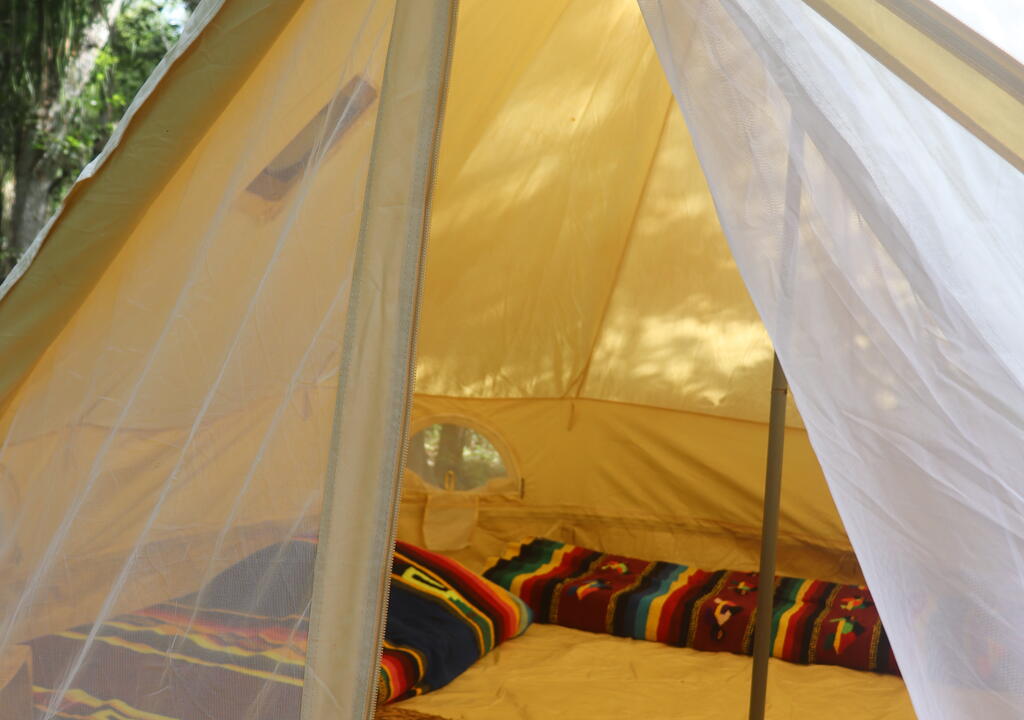 You will sleep in a tent at a camping site.