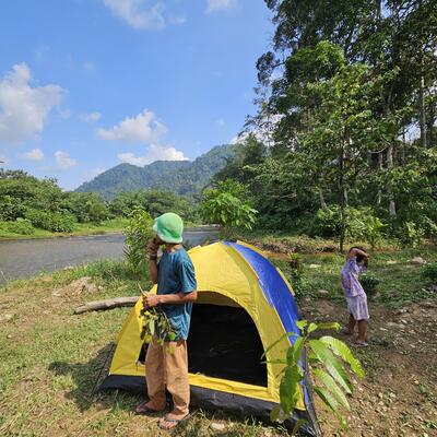 It's lovely! It's a pretty chill environment here. 🌿Jungle, beautiful view, animal sounds, good vibes. You will also learn a lot about nature. And I recommend to go swimming in the river in front of the property. Btw. If you say to the guys you are hungry, they will immediately start cooking for you.😂 You can choose between a bungalow or a tent to sleep in (with mattress both). The food is amazing here. Most of it is from the permaculture garden! Very fresh. You will also learn how to fish. 🐟 Thank you for everything!