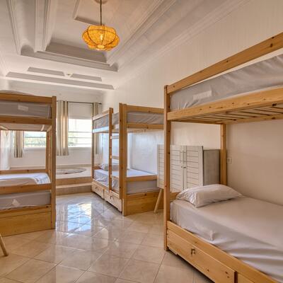 You will have a bed in a shared room, which means you will share the same room with other people.