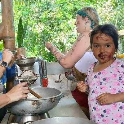 Cobramos un aporte mínimo porque nuestro proyecto es artesanal y autosustentado. Esta contribución nos permite cubrir los costos de producir el chocolate con el que trabajamos durante la experiencia y también parte de la alimentación que ofrecemos. No buscamos lucrar, sino sostener el proceso y asegurar una experiencia auténtica en nuestra finca familiar de cacao orgánico en Caimito, Esmeraldas.