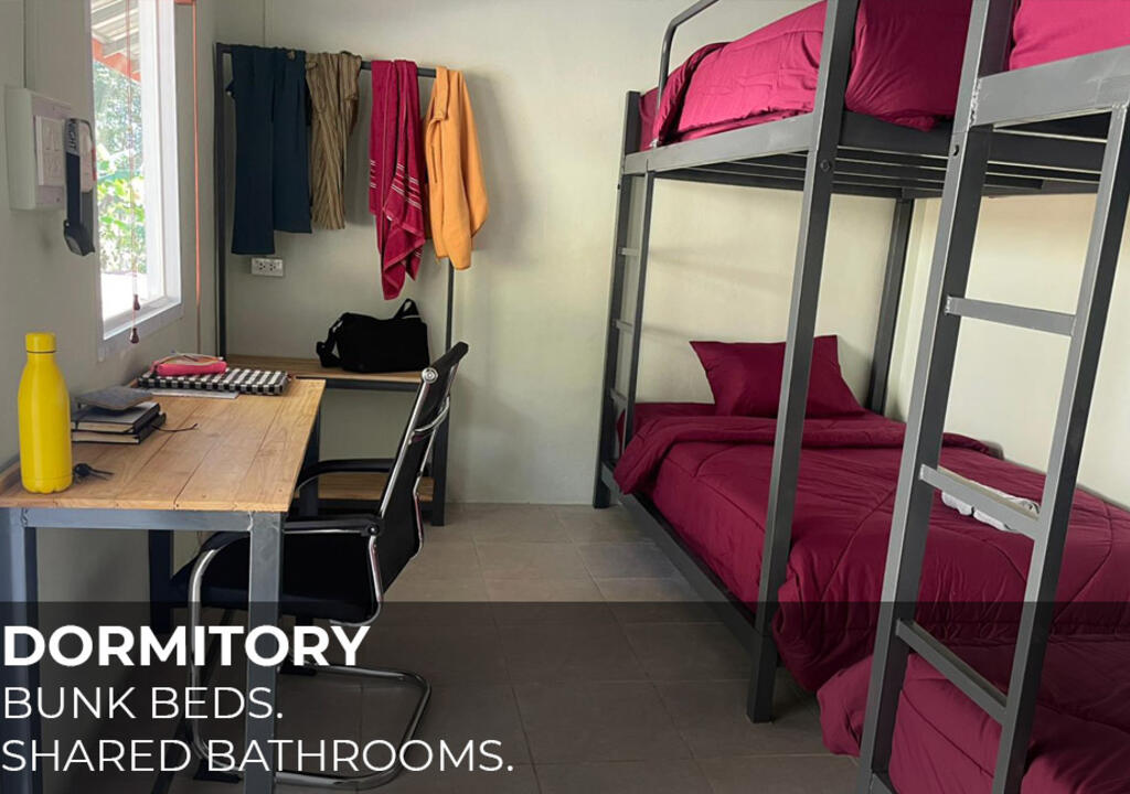 Você terá uma cama em um quarto compartilhado, ou seja, irá dividir o quarto com outras pessoas.