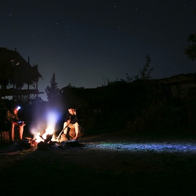 Uma barraca confortável para dormir sob um céu estrelado.