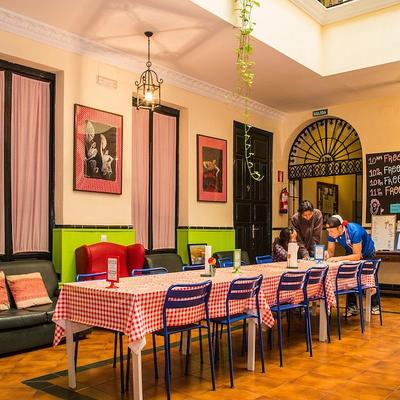 We are a small hostel in the historic center in Seville. The house is a typical Sevillian mansion, with a friendly atmosphere, just a couple of blocks away from the river, and right next to Alameda Hercules where you can find at least over 15 cheap restaurants and bars with typical Sevillans food and terraces. We are a funny people and just want our guests to enjoy and have a good time in the city with us . We require stay for minimum a month