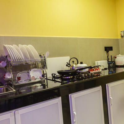 Fique à vontade para usar nossa cozinha para cozinhar sua própria comida.