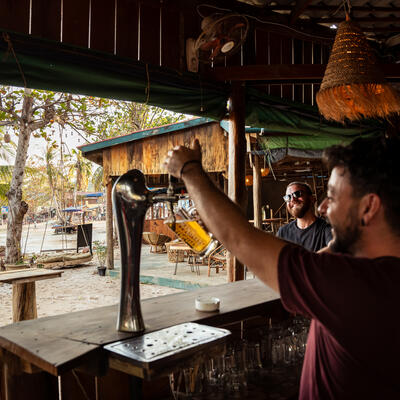 The guest house is a lovely place to volunteer at. I was there during low season so there wasn't a lot to do. The atmosphere of the hostel is very chill and comfortable and it's located right at the beach in paradise! Fred is a super chill and lovely host. Very understanding and adaptable to unexpected situations and tries to make everyone feel included. Working at the bar is super chill. Pouring a few drinks and talking to the customers while also making sure the bar area and seating area stays clean. Check ins are also very easy to do and the system doesn't take long to understand. :)