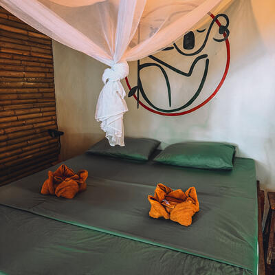 I had an amazing experience at the guest house Hostel. I loved how Fred (the owner) was super easygoing and cool, always saying "no pressure" to learning new things and giving out free dinners and drinks 😁. This is the best volunteering if you are looking for some chill beach time, because the island is a small, calm paradise, especially Mpay Bay.