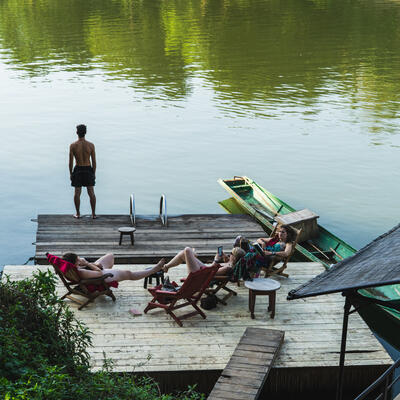 Since it was low season, I didn't work on the boat but instead helped Denis with small tasks in the mornings and taught the staff English in the evenings after their shifts. I really enjoyed the peaceful, eco-friendly lodge away from the city as it was a relaxing environment to slow down in. The team was kind and welcoming, and even with the language barrier, we shared plenty of laughs. Accommodation was simple but comfortable, and I received one meal a day from the lodge's restaurant plus 25% off the next. Overall, it was a meaningful and sustainable way to experience Luang Prabang.