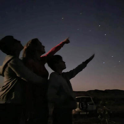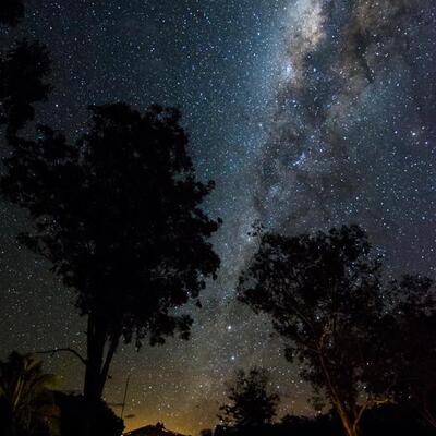 Uma barraca confortável para dormir sob um céu estrelado.